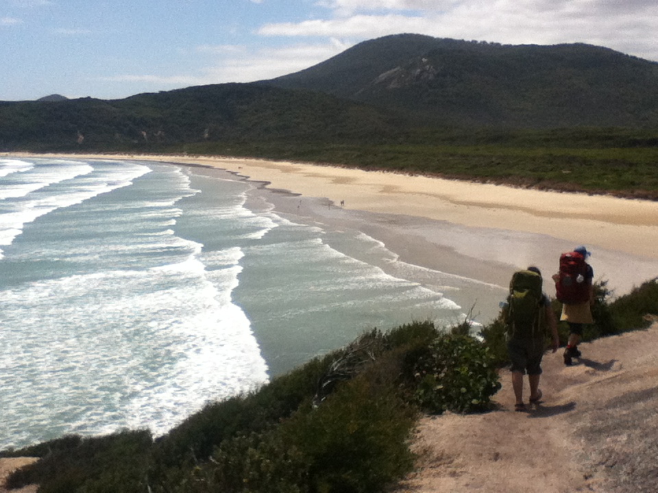 The first stretch of the hike was along the beach at Tidal River. It was at this point I started to wonder how on earth people move with such a gigantic amount of weight on their backs. It just didn’t feel right that my back was in agony so soon. We’d barely gone one kilometer.