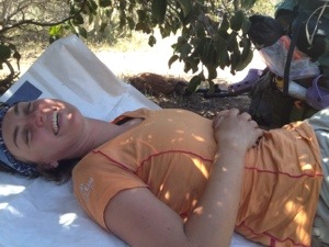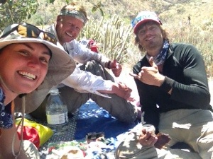 At the water cache we bumped into our hiker friend Chris who we ran into yesterday. He was glad to see us saying we were the most entertaining people he’d come across on the trail so far. We gave him some extra food as he only had tuna left for another two days, then chilled out for a while in the shade together drinking powdered Gatorade.
