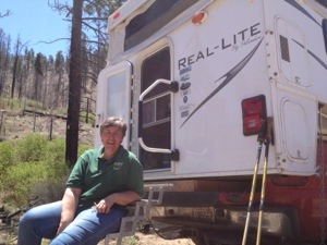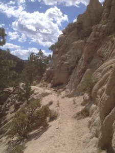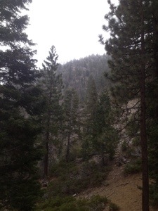 Early on the trail wound around a beautiful lake and was quite flat. I came across a snake that looked like a rattler without the rattle who only slithered away after I stamped my feet on the ground. Later on the trail started to climb again.