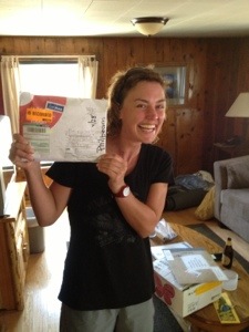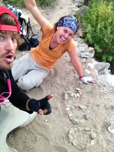 Again I can’t believe people take such good care of us hikers. We wrote our names in the register and I drew a little picture of Muk Muk on the wall. While we were there another trail angel arrived to drop off some fresh bottles of water. She kindly took the photo of Chris and I below.