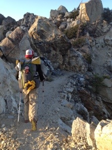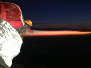 As the sun went down the trail went up, climbing 1,800 feet before winding down some steep ridges with the wind pounding us from all sides. We were actually glad to be doing this section in the dark, 1. because we couldn’t see just how far down the cliffs were and 2. because we didn’t have to walk it in the scorching sunshine.