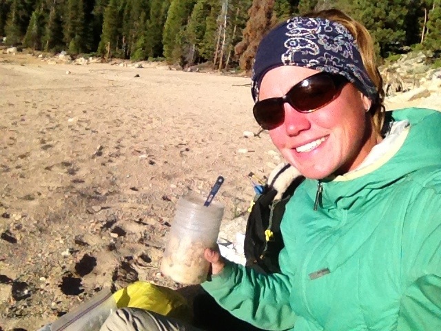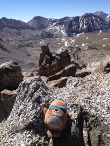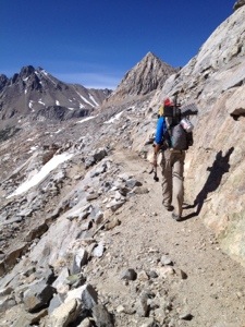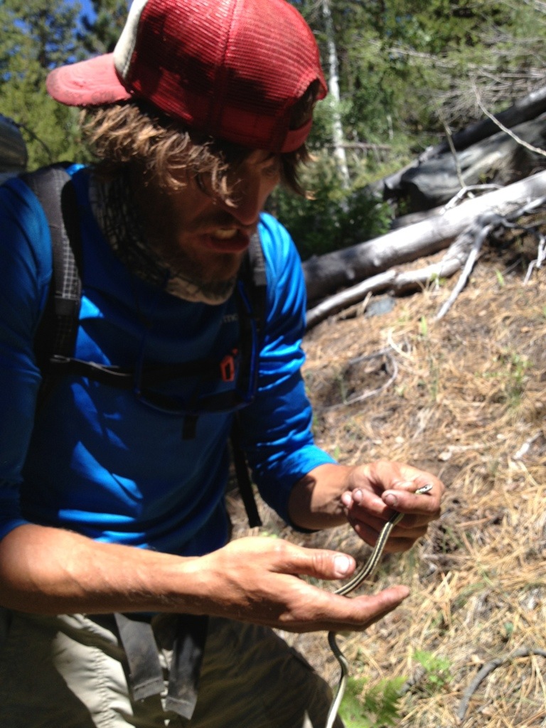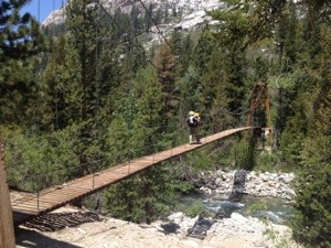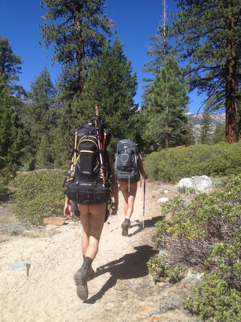 Her hiking partner Mini is a sports psychologist and did a quick interview with me about females hiking the PCT. Once the doco is complete he’s promised to send me the YouTube link. I definitely had the heaviest pack out of everyone hitting the trail at Red’s Meadows. Acid Glasses cringed when he tried picking it up and a few others took turns to see how heavy it felt. One of my purple Frocs had fallen off my pack and luckily someone found it coming off the bus and returned it to me. The strap had come lose and after some deliberation I concluded the only way to fix it would be with a safety pin which Leigh was able to provide.