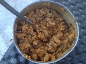 After lunch we hiked another 7 miles to the water cache and stopped once so I could tend to my aching feet. I think I need to take the next few days easy and just rest them when they flair up. Tonight UB cooked up a feast of macaroni, beef, rice and beans, a nice change from Top Ramen. I have a Snickers bar on the ready but I’m hoping tonight that my belly’s so full I won’t be waking up for a midnight snack.