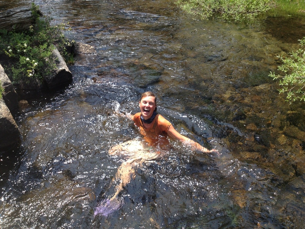 Less than half a mile along we crossed over a creek and everyone decided to stop and have lunch and continue the celebrations! I had a swim in the icy cold water which felt incredible. I’ve swum three times in the last three days because of the intense heat, and each time I’ve enjoyed hiking so much more afterwards.