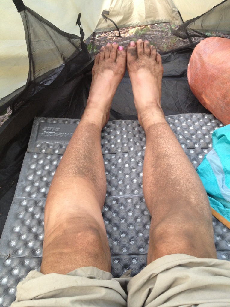 It felt so good to be clean again! At this point I was soooo hungry and was on a mission to find food, but I bumped into Carrot back at the Red Moose so we chatted and laughed at the random goodies Dirty Girl had sent to me including a fly swatter, bug gummy candy, and barbie tissue packets! She also sent me some life saving items including new insoles, knee braces and coffee!!!!