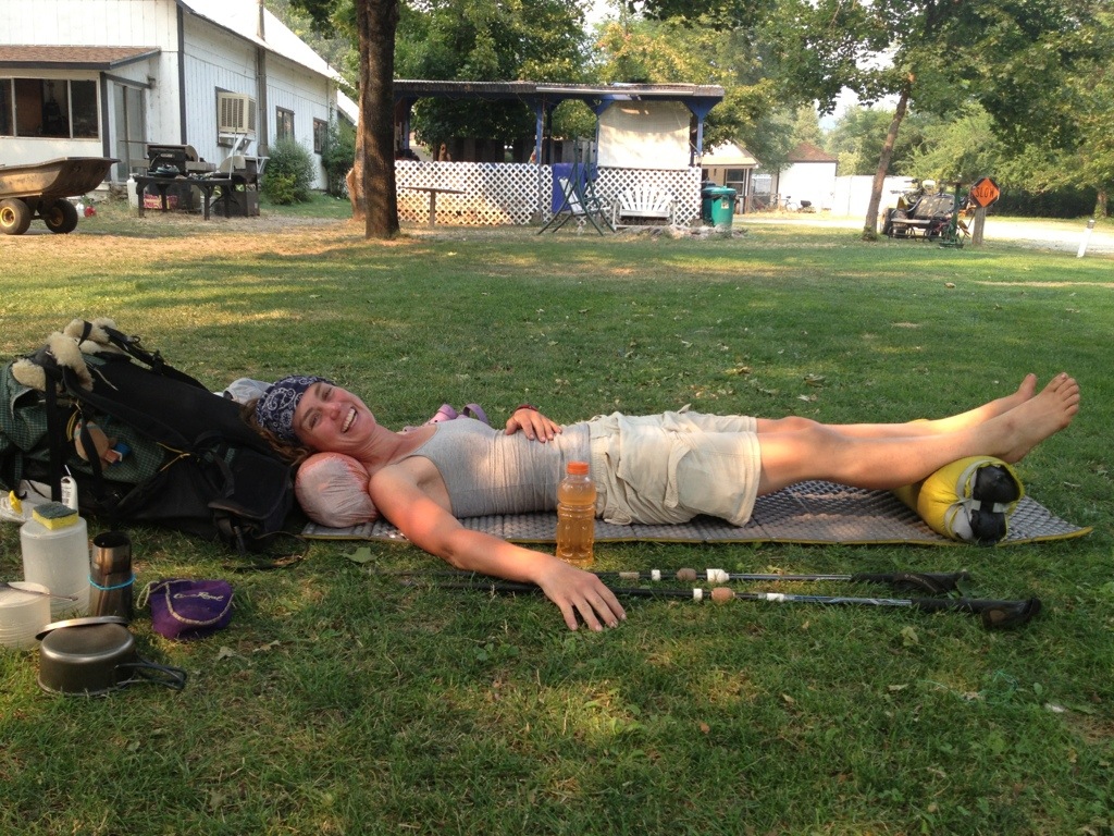 I froze water in ziplock bags to use as ice packs for my shin and hip and spent most of the day sitting or lying down. I did yet another pack shakedown and managed to cut 1 pound and 3 ounces off my base weight. Plus I got rid of a stack of extra food I was carrying so my pack will be lighter up the monster climb tomorrow morning. It’s after 10pm and I’m expecting Fuller to show up anytime now after some time at home back in Oregon. He’s kindly picked me up a new pair of shoes after I realised the new pair of Cascadias I’ve been wearing were too small because my previous pair were in fact a men’s 9.5, not a women’s 9.5 like my current pair. Honestly, will I ever get this right?