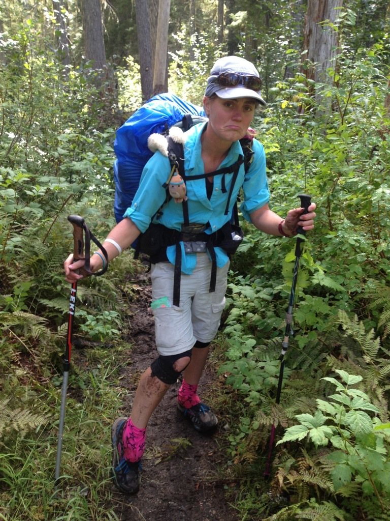 Just after we crossed Lemah Creek my foot got stuck under a hidden root on the trail and I face planted onto a very muddy section of the trail. I was pinned under my huge pack and was giggling so hard Rafiki had to hold onto my pack so I could even sit up. I soon discovered I’d also fallen in horse poop which was smeared all over my right leg… Jolly good!